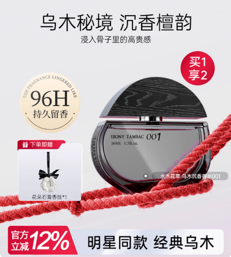 烏木沉香香水持久留香72小時男女士正品官方旗艦店木質淡香禮盒