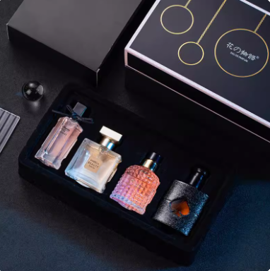 黑色軌跡花意怡人粉色流光斯嘉麗女士香水持久留香淡香四件套禮盒